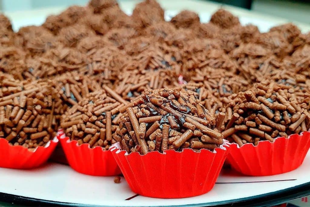 - Passe essa bolinha de brigadeiro no chocolate granulado e disponha em forminhas de papel, se desejar.
